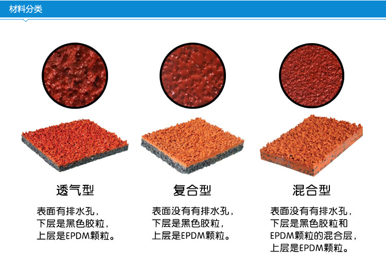 透氣型塑膠跑道材料 混合型塑膠跑道材料 復(fù)合型塑膠跑道材料 自結(jié)紋型塑膠跑道材料 EPDM塑膠跑道材料 預(yù)制型塑膠跑道材料